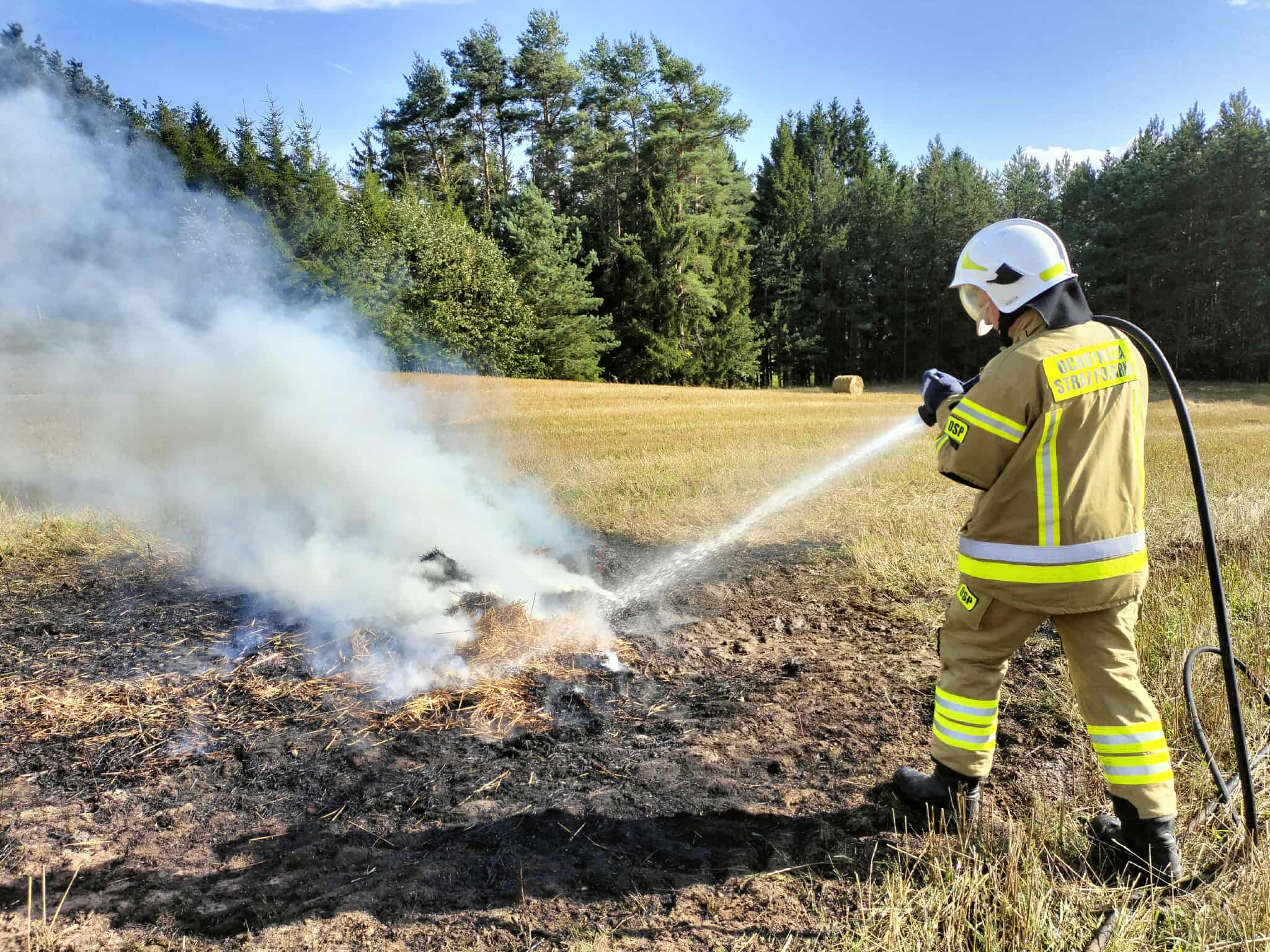 16.08.2025 Nowa Przerośl. Po raz kolejny w tym tygodniu zostaliśmy zadysponowani do pożaru. Po dojeździe zastaliśmy płonącą belę słomy. Dzięki szybkiej reakcji udało się opanować ogień i nie dopuścić do rozprzestrzenienia się. |